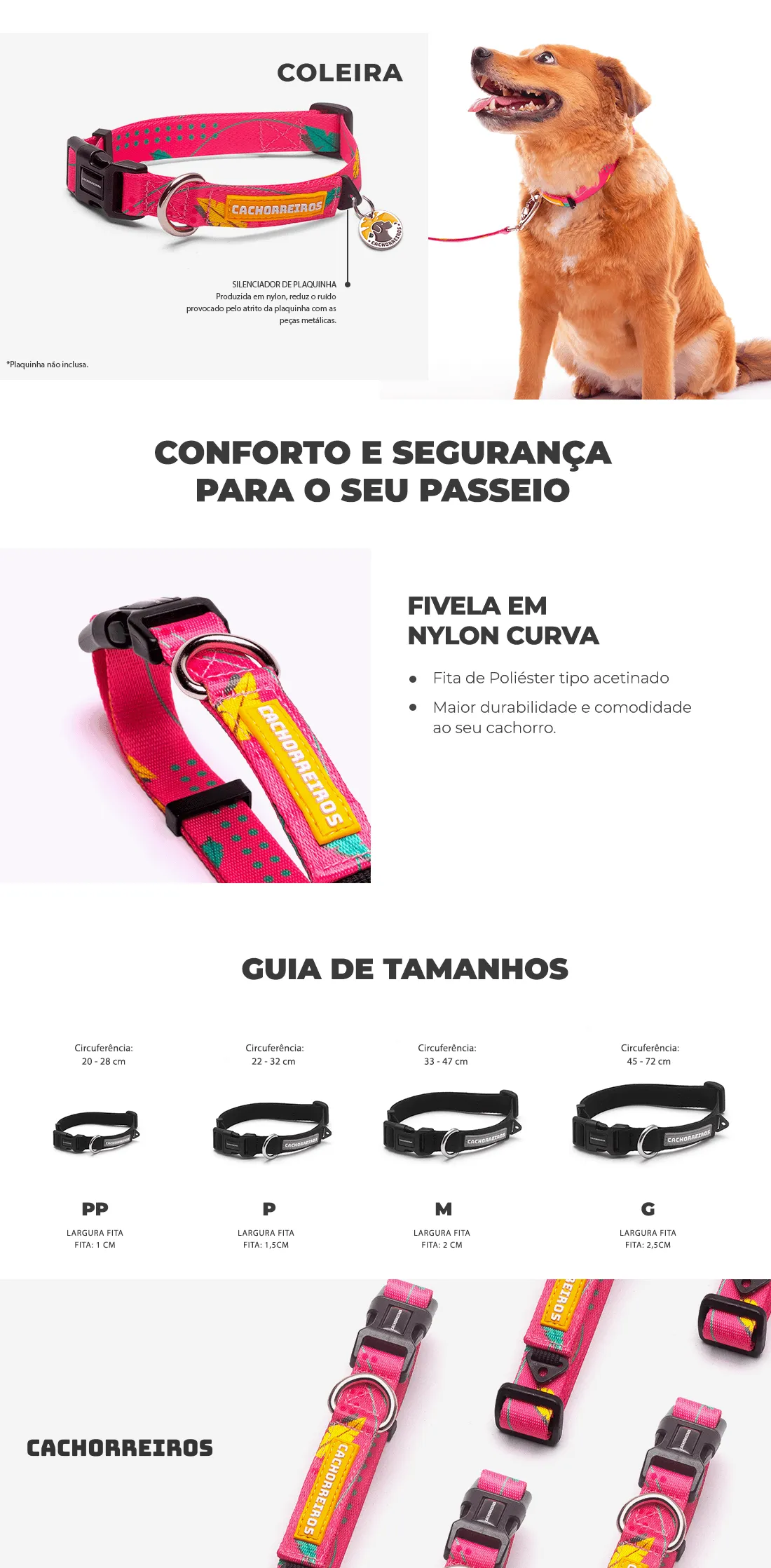 - A Coleira Cachorreiros tem fácil ajuste e encaixe. Fivela Curva em nylon que garante mais conforto.