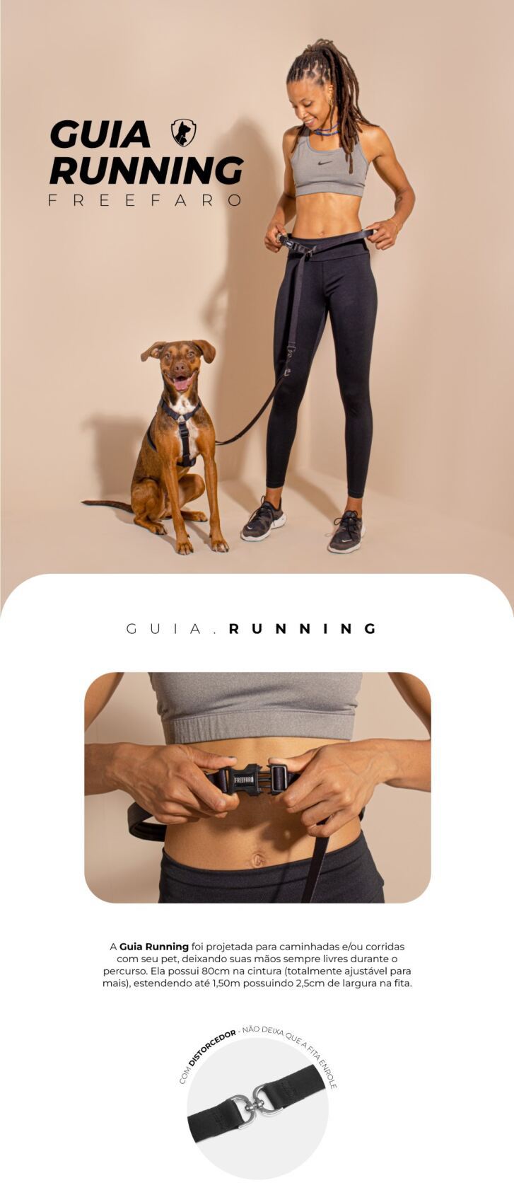 - A Guia Mãos Livres Darkest possui 80cm na cintura (totalmente ajustável para mais), estendendo até 1,50m possuindo 2,5cm de largura na fita;